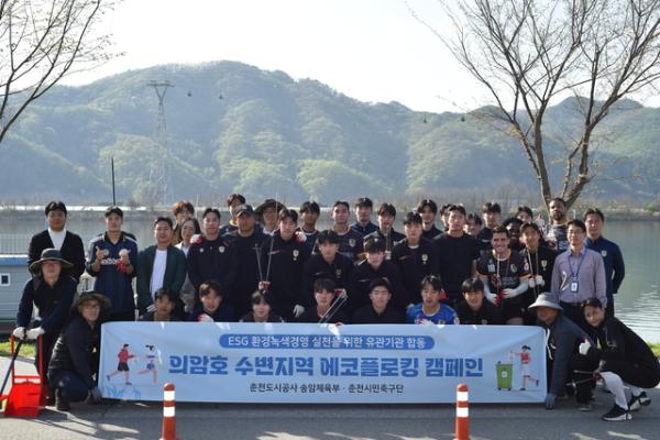 춘천시민축구단은 지난 15일 춘천 송암동 일대에서 플로깅 활동을 펼치며 환경 정화에 나섰다. 이날 선수단을 비롯한 구단 관계자들은 송암스포츠타운과 숙소 주변을 직접 걸으며 쓰레기를 수거하고 재활용품을 분리 배출하는 등 구슬땀을 흘렸다.