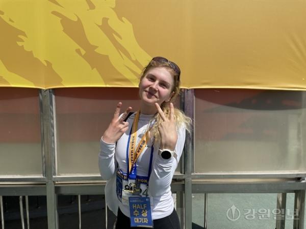 서울대 어학당 학생인 줄리아 홀(Julia Hall·여·25·미국 위스콘신)씨는 이번 대회 여자 하프코스에서 1시간30분47초 기록으로 3위를 차지했다. 그녀는 “서울에서 기차로 이동하기 편해 춘천을 찾게 됐다”며 “강과 산이 어우러진 풍경이 매우 인상적이라 달리는 동안 행복했다”고 했다.