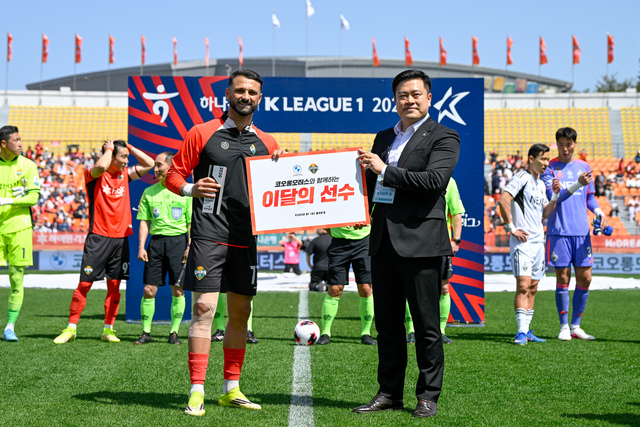 강원FC는 지난 18일 강릉하이원아레나에서 열린 하나은행 K리그1 2026 8라운드 전북현대와 홈경기에서 ‘코오롱 모터스와 함께하는 2~3월 이달의 선수상’ 시상식을 진행하며 이같이 밝혔다.