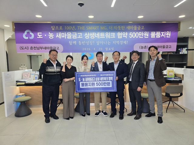 춘천남부새마을금고(이사장:정용현)는 20일 서석새마을금고(이사장:황길근)를 방문해 도·농 상생 네트워크 일환으로 500만원 상당의 물품을 지원했다.