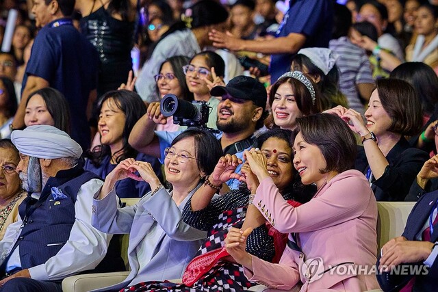 김 여사가 축사를 시작할 때 합장하며 “나마스테”(인도의 인사말)라고 하자 객석에서 환호가 쏟아지기도 했다.