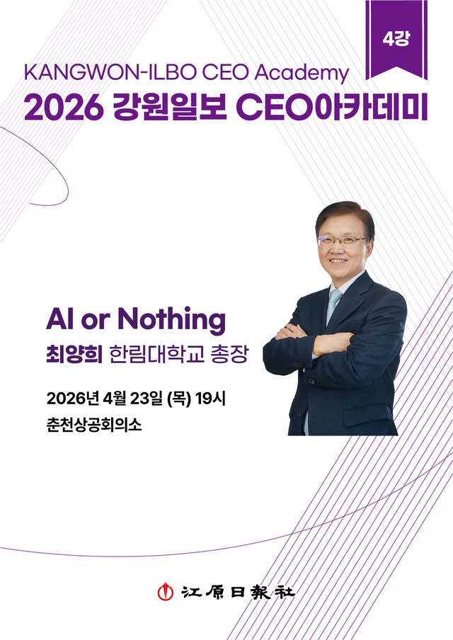 강원일보가 진행하는 ‘CEO아카데미 11기’ 4회차 강연이 23일 오후 7시 춘천상공회의소 4층 대회의실에서 열린다.