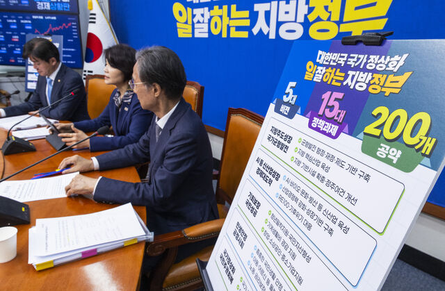 민주당은 지방주도 성장·국가균형발전, AI 등 신산업성장·경제 대도약, 기회보장·국민성공, 민생안정·공정사회, 국가 정상화·국민주권 회복을 5대 비전으로 제시했다. 주요 공약으로는 이재명 대통령이 지난 15일 언급한 ‘메가특구’가 제시됐다.
