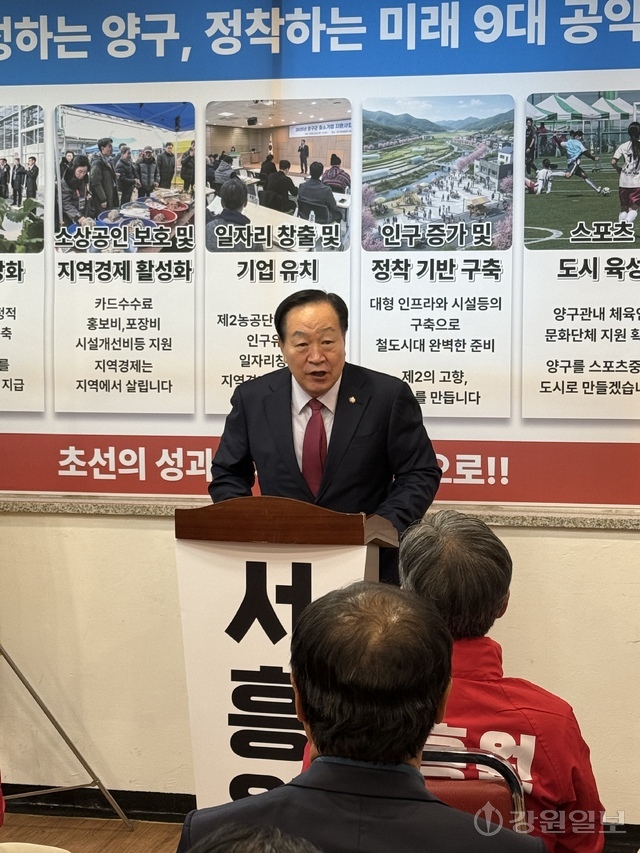 서 예비후보는 “지난 4년 동안 군민 여러분과 함께 현장에서 답을 찾으며 양구의 기반을 다져왔다”며 “이제는 멈추지 않고, 흔들림 없이 시작한 일을 끝까지 책임지고 완성해야 할 때”라고 밝혔다. 이어 “군정의 안정 속에서 추진해 온 정책들을 중단 없이 이어가고, 군민들이 체감할 수 있는 변화로 마무리하겠다”고 했다.