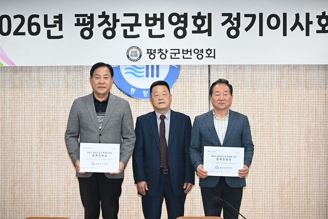 평창군번영회는 지난 24일 방림면사무소 2층 회의실에서 이사회를 열고 더불어민주당 한왕기 예비후보와 국민의힘 심재국 예비후보를 초청해 ‘평창군 발전과 군민 행복을 위한 정책 건의서’ 전달식을 가졌다.