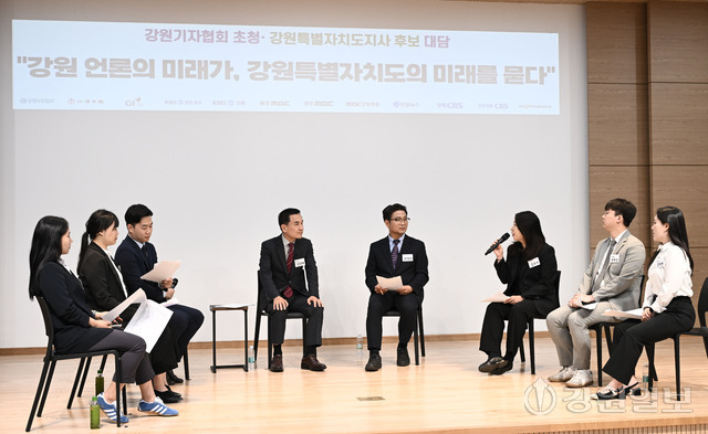 우 후보는 청년 유출 대응을 묻는 강원일보 김오미 기자의 질문에 대해선 강릉·동해·삼척 일대에 대기업을 유치하고, 농업·산간 지역 식품 가공과 산림목재 산업 조성, 관광 문화·청정 에너지 산업 등 강원형 산업 육성으로 청년 일자리를 만들겠다고 답했다. 언론 정책에 대해선 “중앙정부 차원에서 지역 언론이 존립할 수 있는 재정 지원이 필요하고, 지역 언론도 지역 의제 발굴에 앞장설 수 있도록 함께 노력하겠다”고 했다.