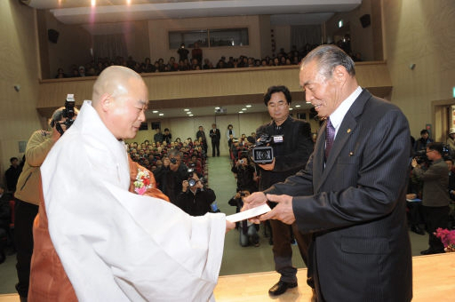 우송 스님은 이날 시상식 직후 황기석 인제군 노인회장에게 상금을 전달하며 지속적인 관심과 지원을 약속한 조오현 이사장의 뜻을 전했다.