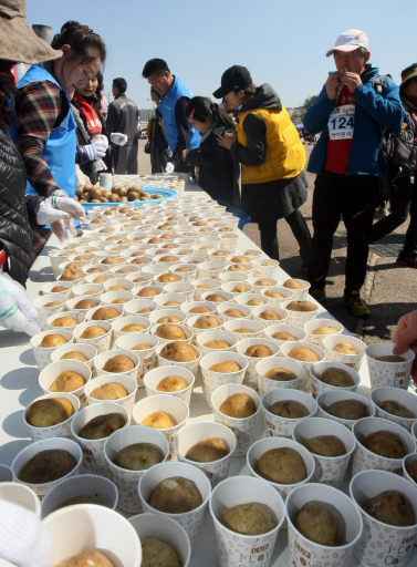 ◇감자를 홍보하기 위해 자신의 주머니 속에 항상 감자를 넣고 다닌다는 최문순 지사는 이날 행사장에 마련된 감자 무료시식코너에서도 참가자들에게 직접 감자를 나눠주며 감자 홍보대사로 맹활약. 또한 2018평창동계올림픽을 홍보하기 위해 배번호 2018번을 달고 대회에 참가한 최문순 지사는 지난해에 이어 올해도 완주에 성공하며 평상시 꾸준한 운동으로 다져진 뛰어난 체력을 과시.