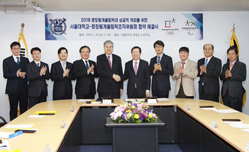 2018평창동계올림픽조직위원회는 29일 서울대 평창캠퍼스의 각종 시설을 평창 동계올림픽에 활용하고 서울대 평창캠퍼스 활성화를 위해 서울대 행정관 소회의실에서 조양호 조직위원장과 성낙인 총장을 비롯한 양 기관 관계자들이 참석한 가운데 업무협약을 체결했다.