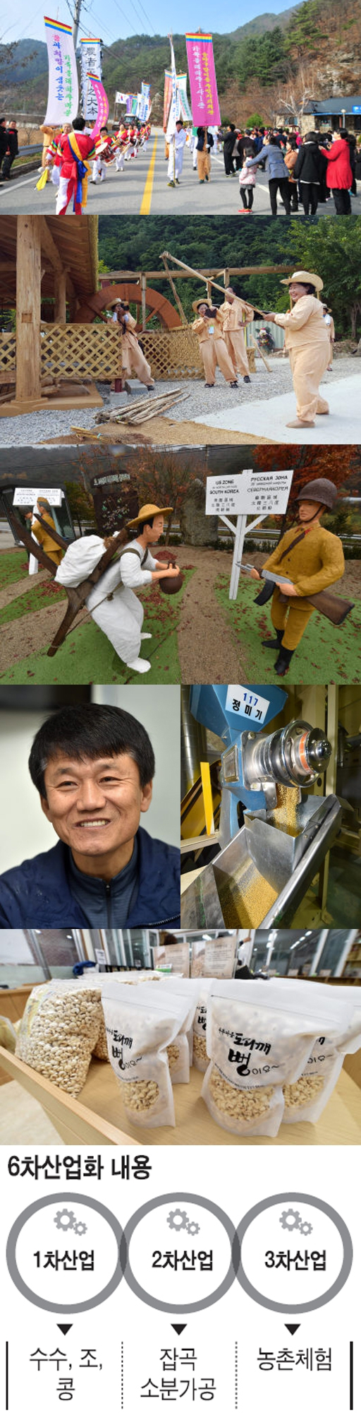 ■가공·판매·체험 한번에 가능한 마을 사업장=하추리 사람들은 예부터 '흉년 들면 하추리 와서 화전이나 일궈 먹지'라는 말을 들어왔다. 들깨, 조, 수수 등 잡곡류를 생산해 온 하추리는 안정적인 생산이 이뤄진 마을이었다. 그만큼 새로운 시도가 어려웠다. 2006년 새농어촌건설운동으로 5억원이 지원된다고 해도 어르신들은 “굳이 해야 하느냐”며 만류했다. 40~50대들은 달랐다. “한번 해봅시다” 나섰고, 2008년 받은 보조금을 농가별로 나누지 않고 폐교 옆 5,289㎡의 부지를 샀다. 이곳은 현재 판매장을 겸한 마을회관, 정보화센터, 도정공장, 체험장, 공연장이 밀집돼 있다. 마을 공동사업을 '원스톱'으로 할 수 있는 공간이 마련된 셈이다.
