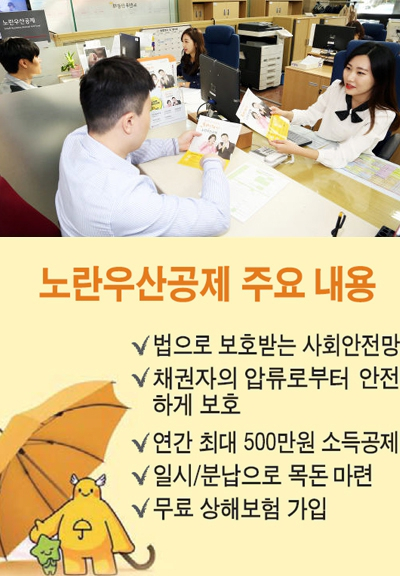 노란우산공제는 월 5만~100만원을 납입하고 질병, 노령 등 공제 사유가 발생했을 때 일정 복리이율(기준 2.4%)을 적용해 지급하게 된다. 일시 또는 분할로 지급받을 수 있다. 납부한 공제금은 관련 법에 근거해 보호받는다. 압류, 양도, 담보 제공이 금지돼 있어 안전하게 생활 안정과 사업 재기를 위한 자금으로 활용할 수 있다.
