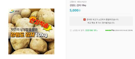 16일 네이버 스마트 스토어 ‘강원 마트’에서 준비된 강원도 청정감자 8000박스가 30초 만에 모두 소진됐다.