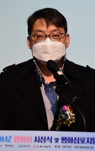 특별상을 받은 강원대 DMZ HELP 센터 정해용 사무국장(지리교육학과 교수·사진)은 “DMZ는 한민족이 꿈을 꿀 수 있는 공간”이라며 “DMZ를 Dream Making Zone(드림 메이킹 존)이라는 말을 만들었는데 이를 넘어 Dance Music Zone(댄스 뮤직 존)이 되길 바란다”고 소원했다. 이어 “남북이 서로 만나 춤추고 노래할 수 있는 공간이 된다면 우리 한반도는 평화의 공간이 되지 않을까 생각한다”고 부연했다.