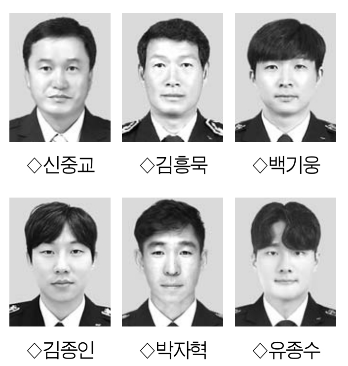 신중교 소방위는 20여년간 구급대원으로 활동하며 1만건 이상의 구급출동 등으로 후배들의 귀감이 됐으며, 김흥묵 소방위는 현장안전점검관 업무를 수행하며 2019년 태풍 ‘미탁' 당시 80대 노부부 구조 등의 공로를 인정받았다.