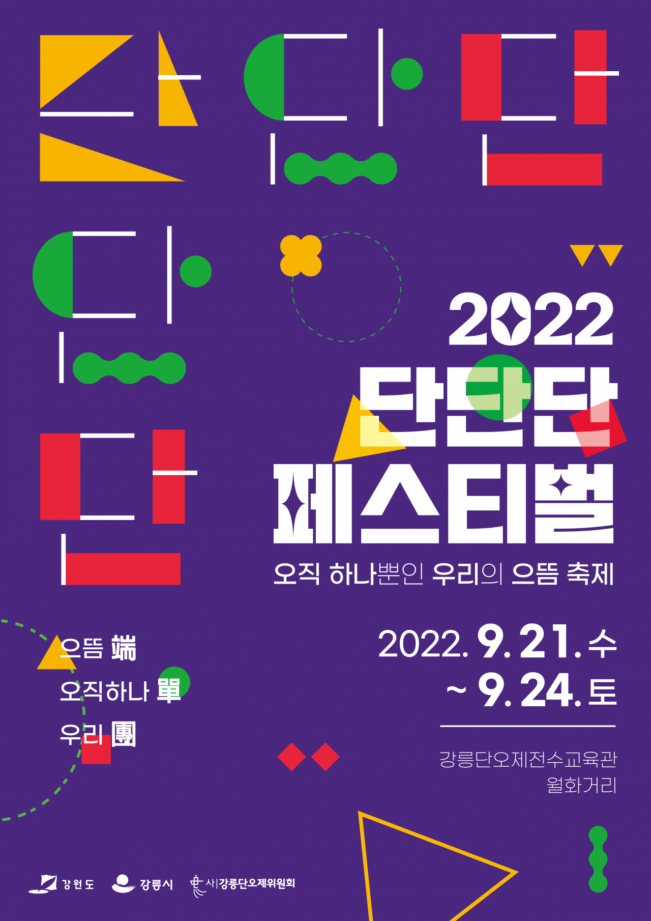 단단단은 으뜸 단(端), 오직하나 단(單), 우리 단(團)의 의미로 오직 하나뿐인 우리의 으뜸 축제라는 의미를 담고 있다. 강원도 전통문화를 중심으로 지역 콘텐츠를 발굴하고, 지역 관광산업 활성화를 도모하기 위해 마련된다.