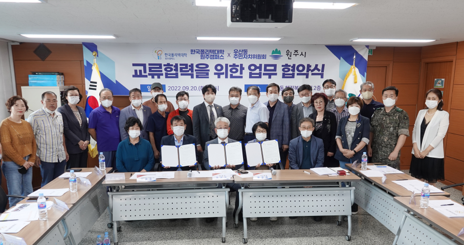원주 우산동행정복지센터는 지난 20일 센터에서 우산동 주민자치위원회, 한국폴리텍대학 원주캠퍼스 등과 함께 마을공동체 활성화 및 인력양성 사업 협업을 위한 업무협약식을 개최했다.