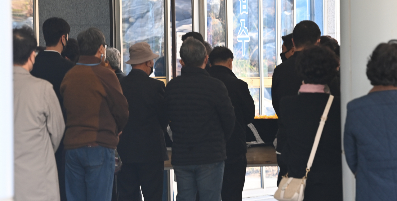 지난달 29일 밤 서울 이태원 참사로 하루아침에 세상과 등진 강릉 출신 희생자 최모씨의 발인식이 열린 1일, 유가족 및 지인들은 오열했다.