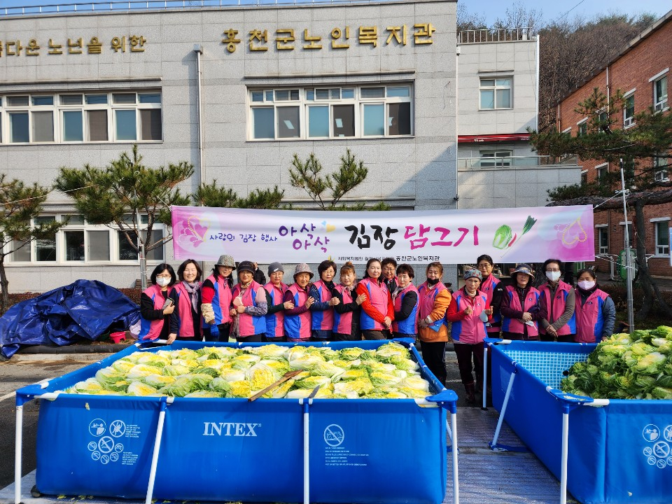 홍천군노인복지관(관장:현윤재)은 지난 11일 한국생활개선홍천군연합회(회장:송영미), 홍천군안전보안관(회장:김혜경), 다솜회(회장:이선숙) 등과 함께 김장담그기 행사를 진행했다.