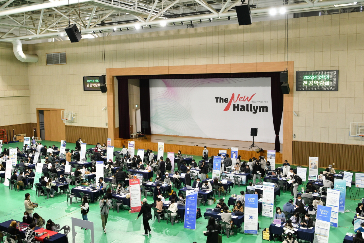 한림대는 16일 한림레크리에이션센터 3층 체육관에서 2022년도 2학기 전공박람회를 개최했다. 융합전공 및 협동전공 포함 52개 학과(전공) 및 장애학생지원센터, 대학일자리플러스센터 등에서 총 55개의 부스를 운영했다.