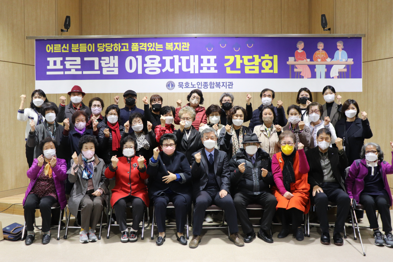 동해시 묵호노인종합복지관은 노년사회화교육 프로그램 참여 여르신들의 다양한 의견수렴을 위해 21일 복지관 강당에서 ‘2022년 이용자대표 간담회’를 실시했다.