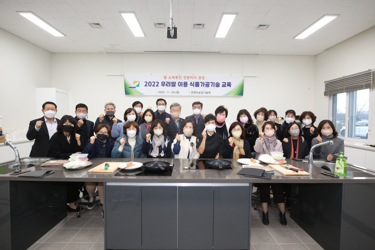 강원도농업기술원(원장:임상현)은 28일 춘천 농업기술센터에서 지역 초등학교 교장 25명이 참석한 가운데 '2022 우리쌀 이용 식품가공기술 교육'을 실시했다. 임상현 도농업기술원장은 “우리쌀 레시피 외에 다양한 강원 농특산물을 활용한 단체급식 레시피 보급으로 쌀과 로컬 식재료 소비 확대 방안을 모색하겠다”고 말했다.