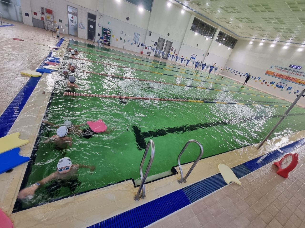 【태백】 태백국민체육센터 수영장이 관리소홀로 수질이 악화, 환불사태가 빚어지고 있다. 수질을 좌우하는 여과기의 교체가 늦어지며 이번 주 들어 녹조현상까지 생기고 있다.