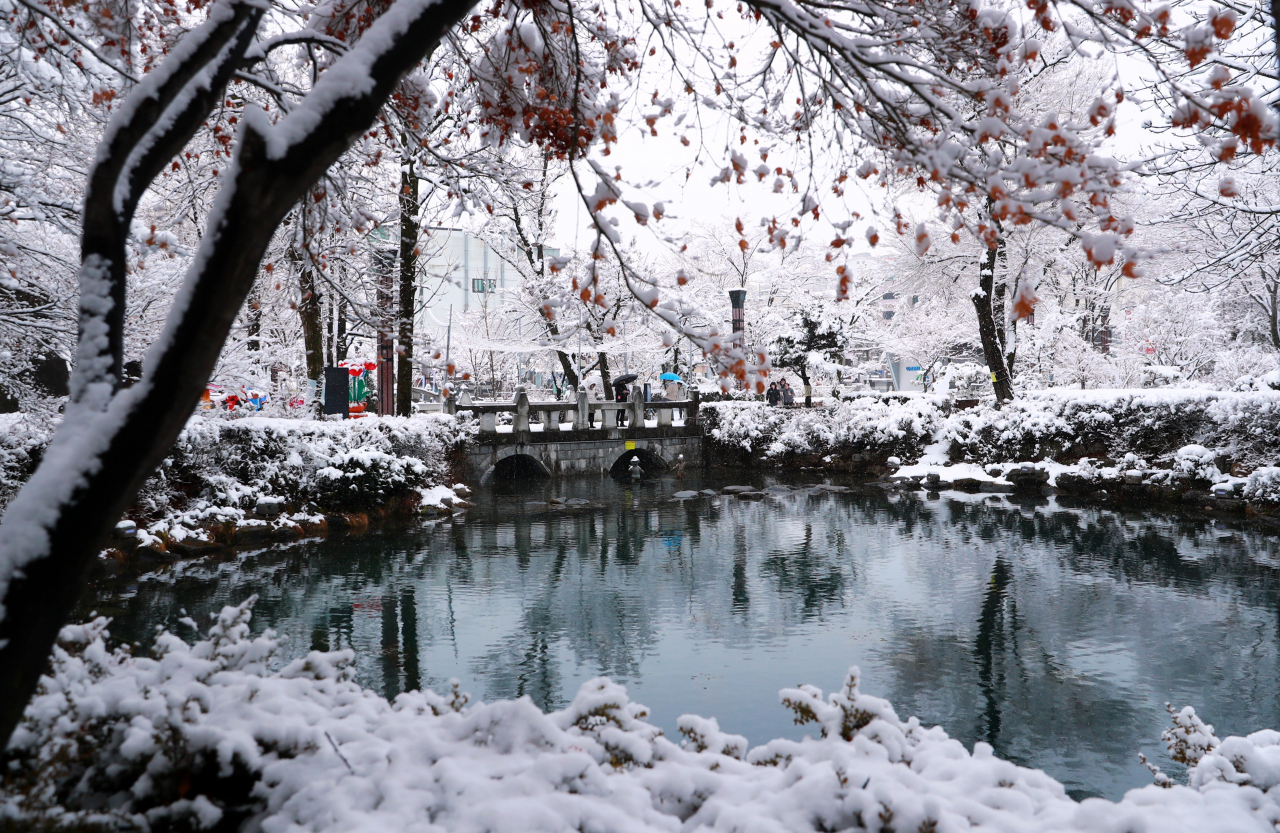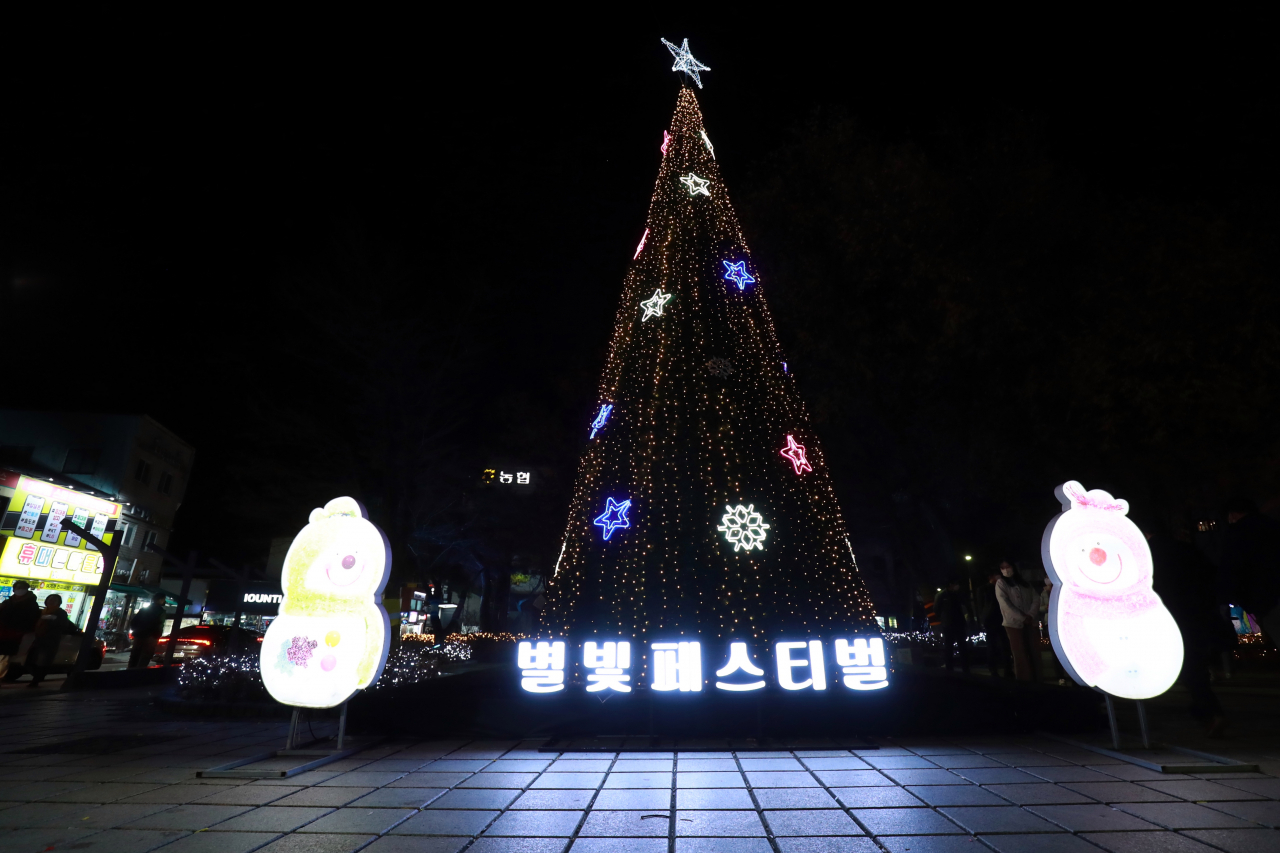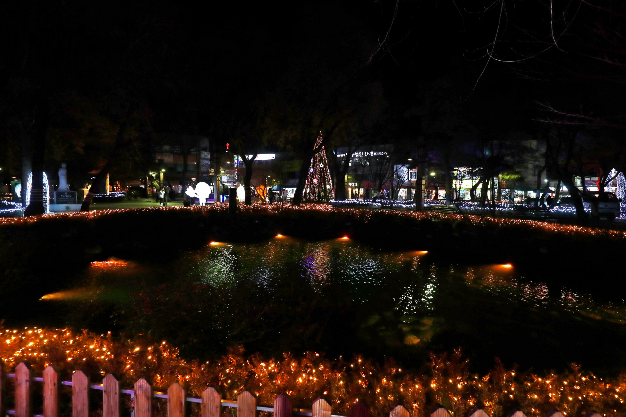 황지연못에서는 태백산 눈축제를 앞두고 ‘별빛 페스티벌’이 진행 중이다. 태백산 눈축제의 주제인 ‘이상한 동화나라 태백마을’에 걸맞게 설치된 유등과 다양한 캐릭터 경관조명이 태백의 밤을 아름답게 장식하고 있다.