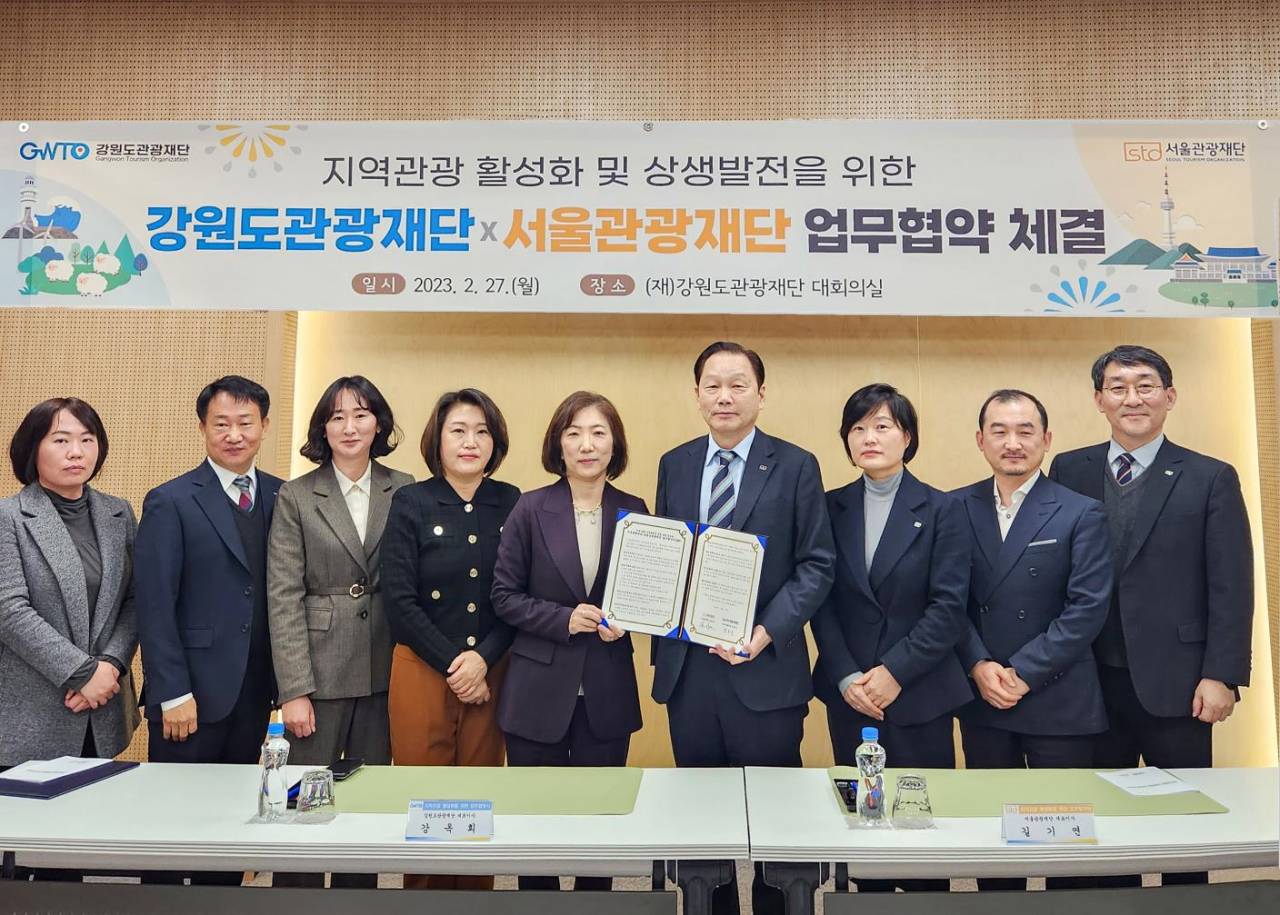 강원도관광재단(대표이사:강옥희)은 최근 재단 대회의실에서 서울관광재단(대표이사:길기연)과 '강원-서울 관광 활성화 및 상생협력을 위한 업무협약(MUO)'을 했다고 1일 밝혔다.