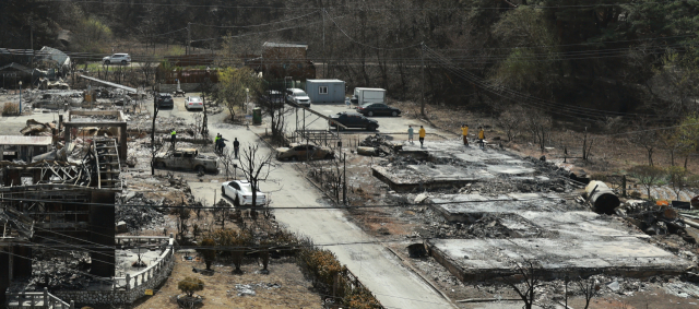 다른 호텔들도 상황은 비슷하다. B호텔은 산불이 코앞까지 다다르며 건물 내부로 연기가 유입됐다. C호텔은 직접적 피해는 없었으나 객실 100여개의 예약이 취소됐다. 업계에 따르면 산불 발생 하루 만에 경포 일대 호텔에서 발생한 예약취소 객실 규모는 1억원 상당이다.