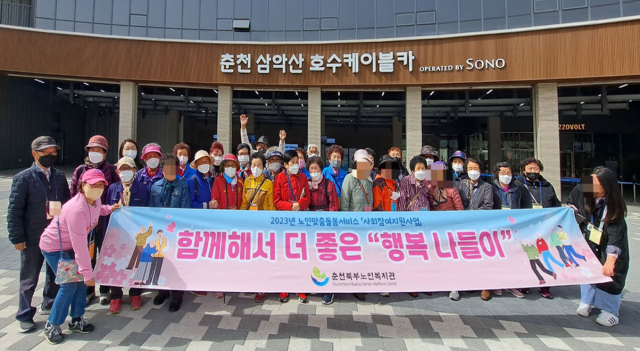 춘천북부노인복지관(관장:박재호)은 지난 11일에 이어 13일에 노인맞춤돌봄서비스 대상 어르신 60명과 함께 춘천 삼악산 호수케이블카를 체험하는 ‘행복나들이’ 행사를 진행했다. ‘행복나들이’ 는 사회적 관계가 취약하거나 고립감과 우울감을 호소하는 어르신들이 사회관계를 형성하고 의미 있는 여가시간을 통해 이를 해소할 수 있도록 도움을 주는 프로그램이다. 참가자들은 이날 케이블카를 타고 의암호와 삼악산의 봄 풍경을 감상하고 삼악산 정상 전망대에서 춘천 시내 모습을 한눈에 담아보는 시간을 가졌다.