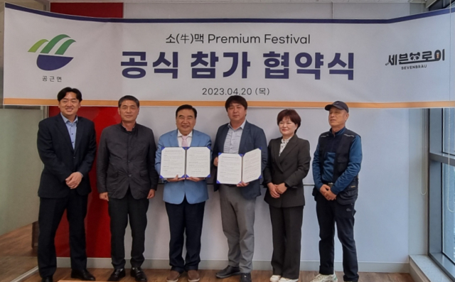 소(牛)맥 프리미엄 페스티벌(Premium Festival) 추진위원회는 20일 서울에 있는 (주)세븐브로이 본사에서 페스티벌 성공 개최를 위한 업무협약을 체결했다. 협약에는 한두만 추진위원장과 김강삼 (주)세븐브로이 대표, 장명희 공근면장과 실무진 등이 참석했다.