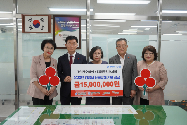 대한간호협회·강원도간호사회는 24일 도 보건체육국장실에서 산불피해 지원 성금 1,500만원을 강원도사회복지공동모금회(이하 도모금회)에 전달했다.