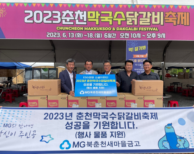 북춘천새마을금고(이사장 김선호)는 2023년 춘천막국수닭갈비축제 성공기원 및 지역사회 발전을 위하여 100만원 상당의 물품지원을 하였다.