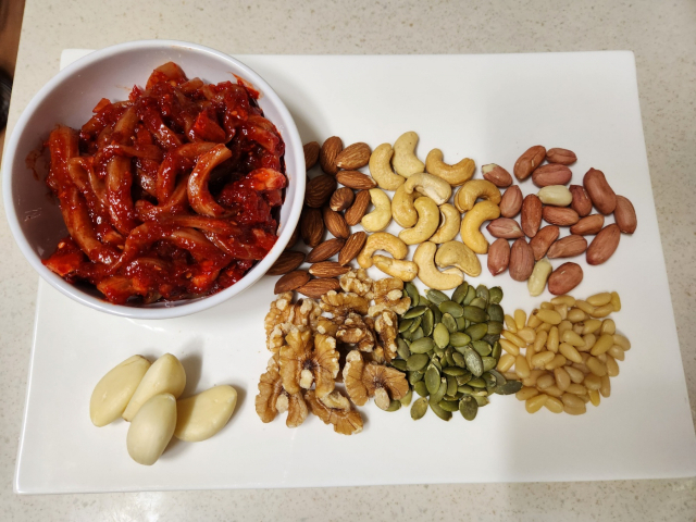 오징어젓갈, 견과류 (시중에 판매된 일회분 포장 견과를 사용하면 간편하다)