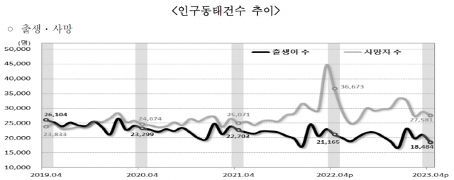28일 통계청이 발표한 ‘2023년 4월 인구동향 및 5월 인구이동’에 따르면 도내 지난 4월 출생아 수는 545명으로 2022년 4월 출생아 570명에 비해 4.4%(25명) 줄었다. 이는 1981년 관련 통계를 작성하기 시작한 이후 4월 기준 가장 낮은 수치다. 월별로도 2021년 12월(482명), 2022년 12월(520명)에 이어 역대 세 번째로 적었다.