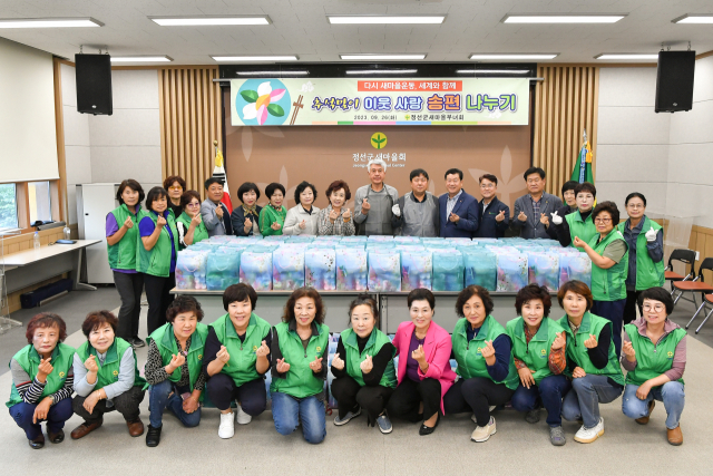 또 이날 정선군새마을부녀회는 새마을회관 2층 회의실에서 최승준 정선군수를 비롯한 새마을부녀회원 등 70여 명이 참석한 가운데 추석 명절맞이 송편 나눔행사를 개최했다.