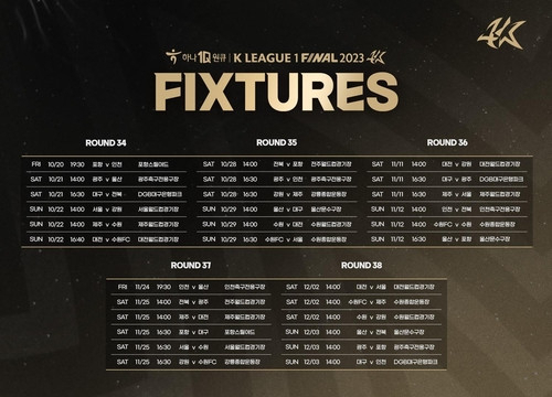 한국프로축구연맹은 하나원큐 K리그1 2023 파이널 라운드 일정을 11일 발표했다. K리그1은 33라운드의 정규 라운드를 치러 1∼6위 팀이 상위 스플릿인 파이널A로, 7∼12위 팀이 하위 스플릿인 파이널B로 갈라졌다. 파이널A에서는 우승과 아시아 챔피언스리그 진출 경쟁이, 파이널B에서는 강등 경쟁이 펼쳐진다.