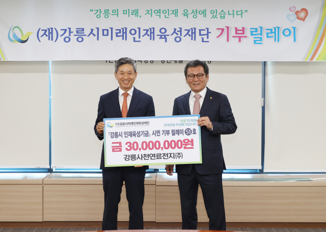 강릉사천연료전지㈜(대표:이재동)는 23일 강릉시청을 방문, 지역인재 육성을 위해 3,000만원의 장학금을 (재)강릉시미래인재육성재단에 기탁했다.