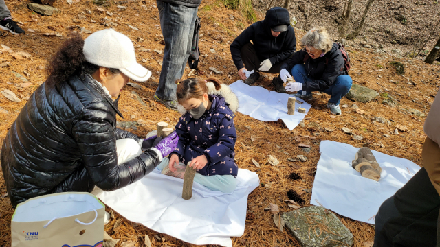 ‘학술림 숲속 여행’ 코스는 아동, 어르신 등 가족 단위 참가자들을 대상으로 학술림 자연학습장에서 열렸다. 강원대 학술림 소속 산림치유지도사의 안내로 진행된 이 코스에서 가족참가자들은 돋보기로 이끼를 구경하거나 나무로 퍼즐 맞추기를 하며 즐거운 시간을 보냈다.