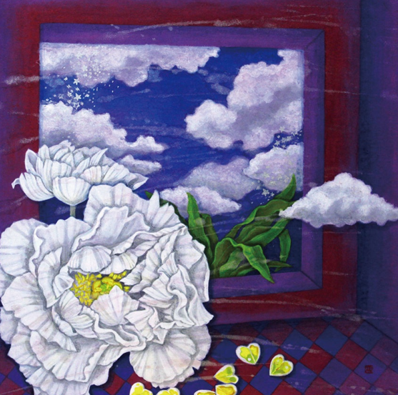 김 작가 역시 기억하고 싶은 순간들을 수집한다. 이후 붓을 들어 기억을 작품 속으로 옮기기 위한 천착의 시간과 노력을 반복한다. 화폭 속의 꽃과 풍경들은 멈춰있지만, 사실은 각자만이 간직한 기억의 방향으로 흐르고 있는 듯 하다. 게다가 그는 최근 작품에서 청색 색소인 인디고카민과 짙은 보라빛이 도는 크림슨을 섞어 내며, 창밖 풍경을 작품 안으로 들어오게 만든다. 그 안에는 나비처럼 날고 있는 노란색 하트도 있고, 비밀스러운 쪽지와 약속의 리본, 별과 구름이 있다. 또 작가의 유년기를 엿볼 수 있는 책가방과 앨범을 통해 시간의 기억을 묘사한다.