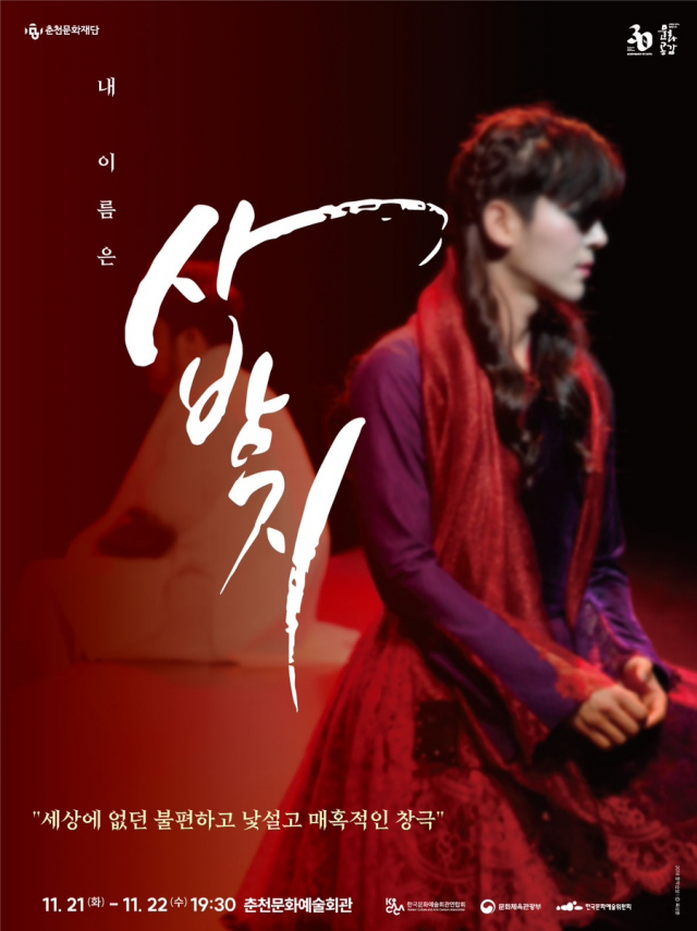춘천문화예술회관 개관 30주년을 맞아 춘천문화재단이 기획한 창극 ‘내 이름은 사방지’가 오는 21일, 22일 이틀간 춘천문화예술회관에서 공연된다.