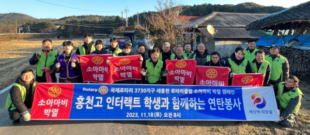 새홍천로타리클럽(회장:강대규)와 홍고인터랙트(대표:조권희) 학생들은 지난 18일 지역 취약계층 가정에 사랑의 연탄나눔 봉사활동을 실시했다.