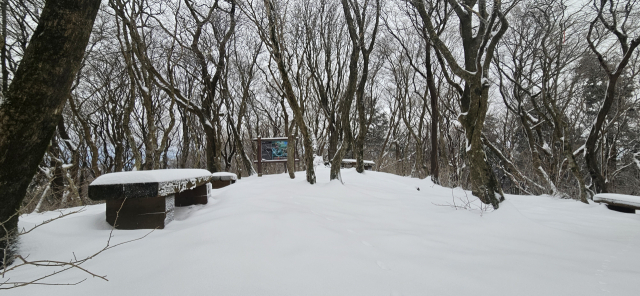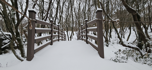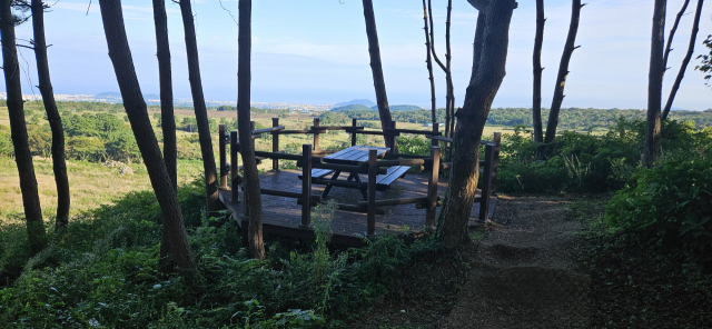 오름 정상까지는 눈앞에 목재계단이 끊임없이 펼쳐져 있다. 마치 ‘천국으로 가는 계단’ 같다. 콧노래 부르며, 새들의 노랫소리를 들으며 한 걸음 한 걸음 옮기다보니 어느덧 정상.