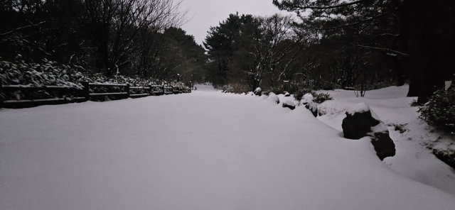 또 한 켠으로 걸을 때는 ‘뽀드득 뽀드득’, 발 밑에서 노랫소리가 들린다. 화산토(火山土)인 송이(스코리아)길이다, 또 다른 쪽은 자갈돌길.