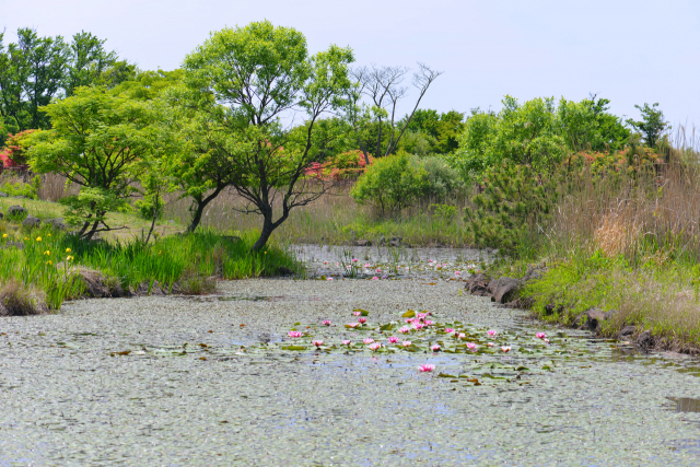 한라생태숲의 중심에 자리한 수생식물원과 생태연못. 이곳은 과거에 대부분 훼손되거나 사라진 습지를 대신해 조성된 것으로 개장한 지 10여 년의 세월이 흐르고 다양한 생물종이 서식할 수 있는 환경이 만들어지며 자연습지의 면모를 갖추게 됐다. 개구리, 쇠살모사, 유혈목이 등 양서·파충류와 물장군과 물방개 등 곤충류, 갈대와 부들, 순채 등 500여 그루의 나무와 50여 종의 수생식물이 이곳에 기대어 살아가고 있다. 운이 좋으면 이곳에 물을 먹으러온 노루와 물 위에서 연잎 사이로 유유히 노니는 원앙과 기러기들도 볼 수 있다.