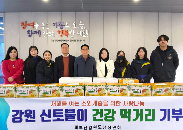 재부산강원도청장년회(회장:안정태)는 3일 '영월군 산모퉁이농산물'이 생산한 청정 농산물을 부산 수영구 광안동 수영구장애인복지관에 기부했다.
