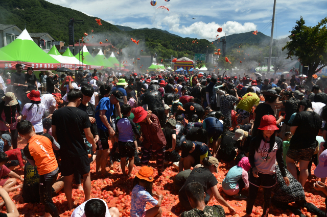 # 토마토축제 열리는 토마토의 고장=매년 여름 토마토축제가 열린다. 화악산에서 나오는 싱싱한 토마토를 이용하고 화천의 청정 이미지를 소비자들에게 어필하면서 만든 축제다. 2003년 시작돼 갈수록 이색 프로그램을 추가하면서 이제는 사내면 대표 여름축제로 자리 잡았다. 지난해 토마토축제의 경제효과가 154억원을 상회한 것으로 분석됐다. 축제기간 모두 11만6,514명의 관광객이 다녀갈 정도다. 토마토 이외에도 축제장에 마련된 농특산물 판매장에서는 지역 농산물과 가공식품이 판매된다. ‘황금반지를 찾아라’ 이벤트 등 다양한 프로그램이 마련돼 흥행과 지역경제 기여 등을 모두 이루고 있다. 여기에 승리부대 장병들이 함께 참여하면서 민·관·군·기업 상생축제이자 경제축제, 산업축제의 모델로 자리 잡았다.