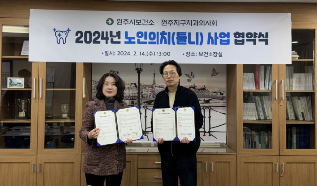 원주시보건소(소장:김진희)는 지난 14일 보건소에서 원주지구치과의사회(회장:최승태)와 노인의치(틀니) 사업의 원활한 추진을 위한 업무협약을 했다.