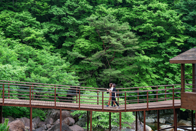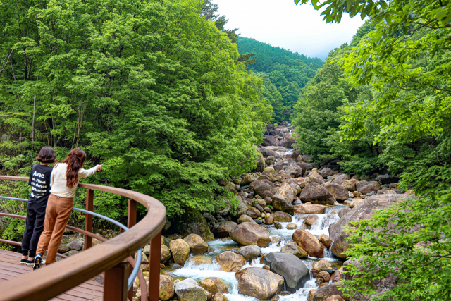 대원사계곡길은 남녀노소, 산행이 처음인 사람도 부담이 없다. 험한 등산로가 아닌 산책길로 조성돼 있어 별다른 준비 없이 가볍게 걷기 좋은 3.5㎞ 길이의 맞춤길이다. 대부분의 길이 자연과 어우러진 나무 데크와 흙길로, 자연 그대로 보존된 생태를 체험할 수 있다. 특히 대원사 앞에 설치한 58m 길이의 방장산교는 전국 국립공원 탐방로에 설치된 다리 가운데 규모가 가장 크다. 오랜 역사를 간직한 천년고찰 대원사도 자박한 걸음으로 둘러보기 좋다. 대원사는 넓은 주차장 등 편리한 접근성과 걷기 수월한 탐방로가 입소문이 나서 주말이면 꽤 많은 사람이 찾는다.