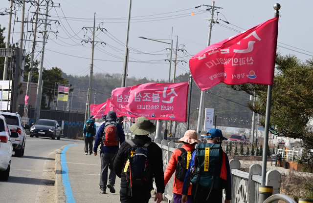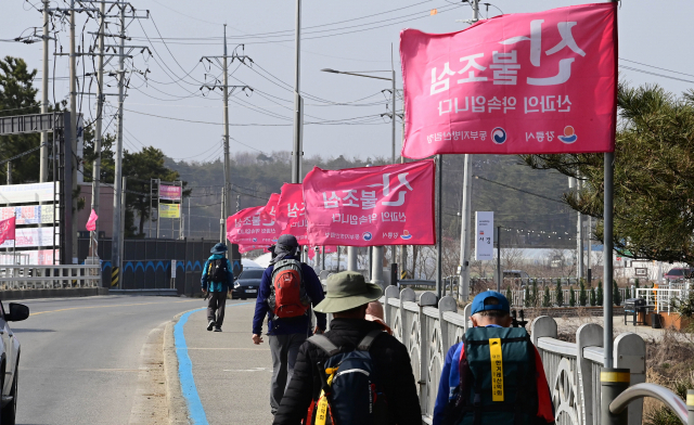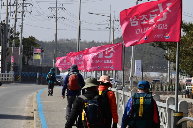 동해안에 강풍주의보와 함께 건조주의보가 동시에 발령돼 대형산불에 대한 위험이 높은 가운데 17일 강릉시 사천면에 산불조심 깃발이 바람에 나부끼고 있다. 강릉=권태명기자
